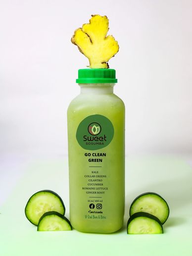 Cold-Pressed Kale, Dandelion Greens, Cilantro, Cucumber, Ginger Root