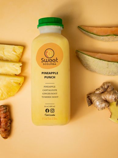 Cold- Pressed Pineapple, Cantaloupe, Ginger Root, Tumeric Root